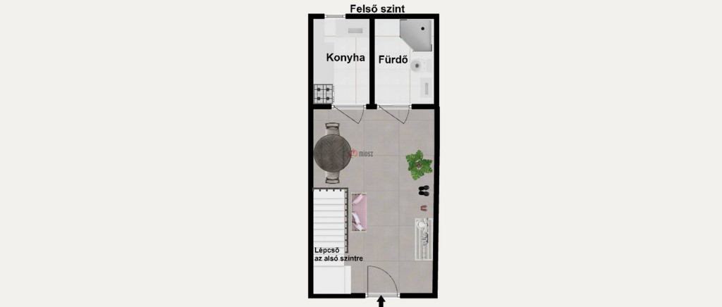 A LAKÁS kertvárosias övezetben lévő családi ház önálló, külön bejáratú lakrésze, mely 2 szinten terül el. Azon a szinten, ahová belépünk, egy tágas előtér található, innen nyílik a konyha és a fürdőszoba. Erről a szintről egy lépcső vezet a lenti szintre, a hálószobába. A 2 szint mérete összesen 50 m2. Parkolni az épület előtt lehet ingyenesen. Rezsi fizetése fogyasztás alapján történik.
