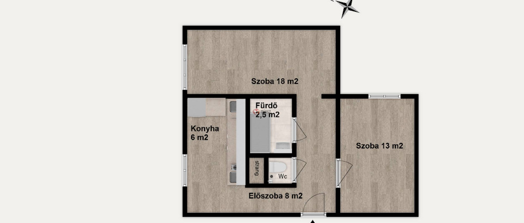 •elosztás: 2 külön nyíló szoba
