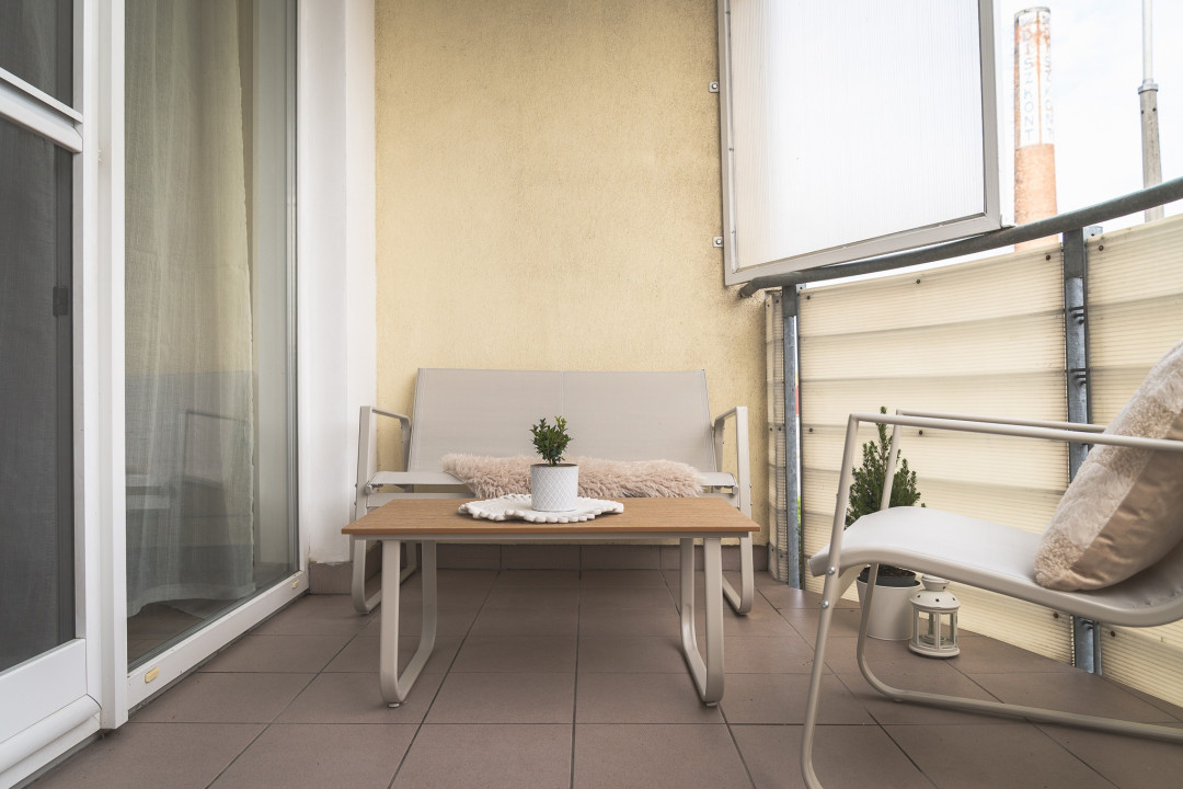 A nappaliból kilépve a 8 m2 nagyságú FEDETT ERKÉLYRE érkezünk. Az itt elhelyezett kültéri szekrény extra tárolási lehetőséget biztosít. Az ideális pihenéshez kültéri bútorok is rendelkezésre állnak.