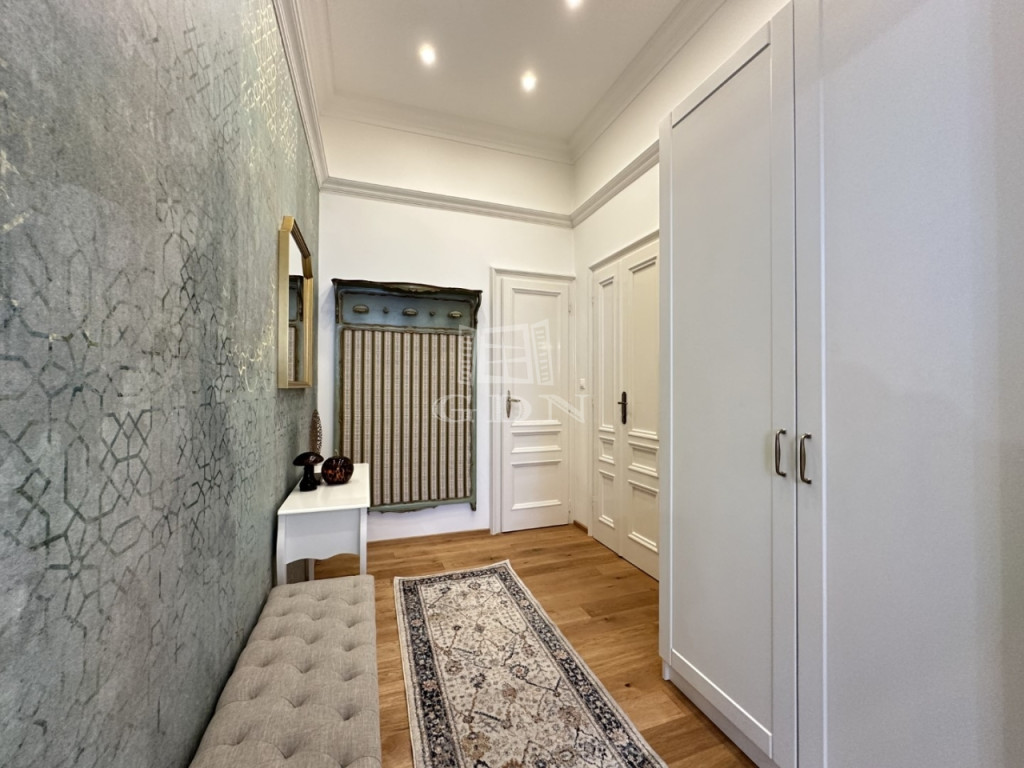 BL-003992 Történelmi Belvárosban (Fő utcán), frekventált helyen, társasházban első emeleti, 90 nm-es, 2 szobás + konyha-étkezős, tégla, exkluzívan felújított, belső építész által tervezett, gázkazán + radiátor fűtésű, tágas terekkel rendelkező lakás hosszútávra kiadó.