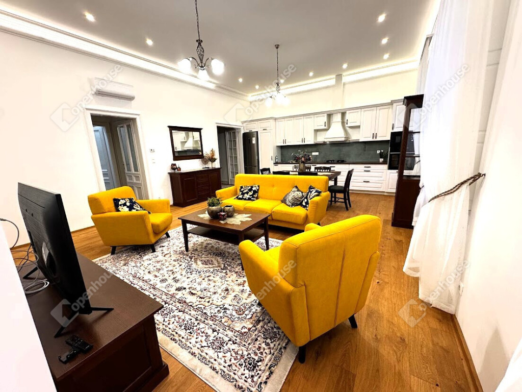 Kiadó egy exkluzívan felújított, 90 m²-es téglaépítésű lakás a belváros legkeresettebb részén, közvetlenül a Fő utca szomszédságában! Az ingatlan a társasház első emeletén található, és belsőépítész által megtervezett modern, tágas terekkel rendelkezik.