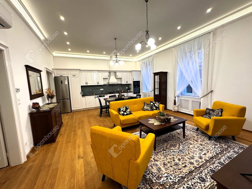Kiadó egy exkluzívan felújított, 90 m²-es téglaépítésű lakás a belváros legkeresettebb részén, közvetlenül a Fő utca szomszédságában! Az ingatlan a társasház első emeletén található, és belsőépítész által megtervezett modern, tágas terekkel rendelkezik.