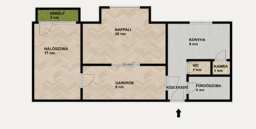 A hálószobán erkély található. A lakás