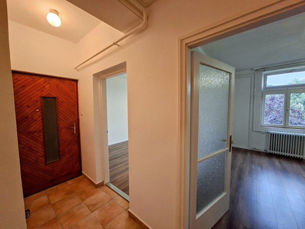 A lakás D-DNy-i fekvésű, frissen felújított, parkra néző nagy ablakokkal, az első emeleten található.