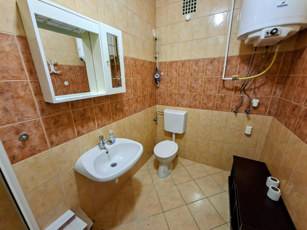 Fűtése önálló gáz-cirkó, a fürdőben tusoló és WC található.