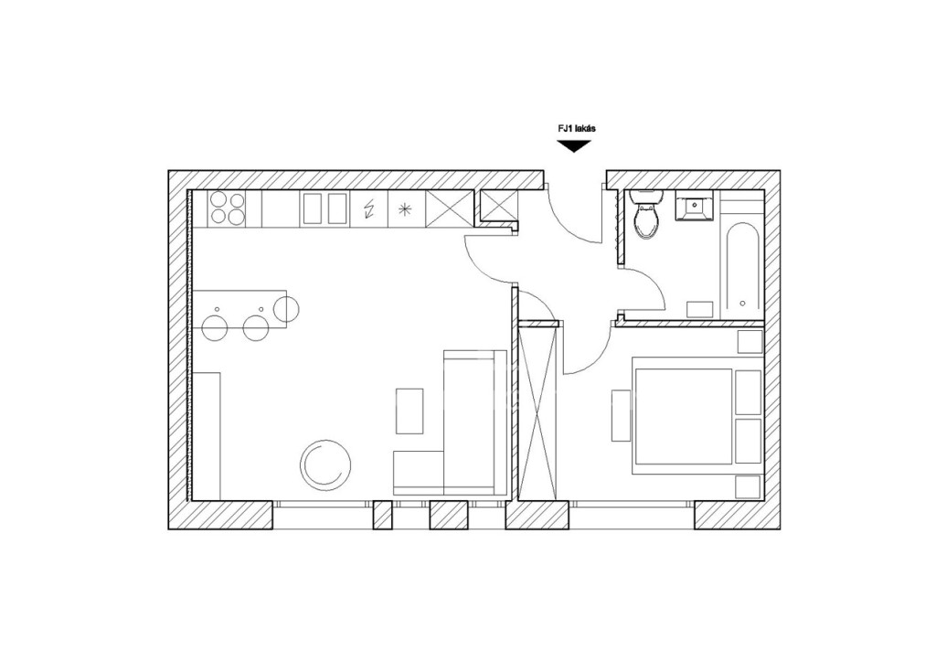 A lakásban található egy előszoba, amelyből nyílik a konyha-étkező-nappali, a hálószoba és a fürdőszoba!