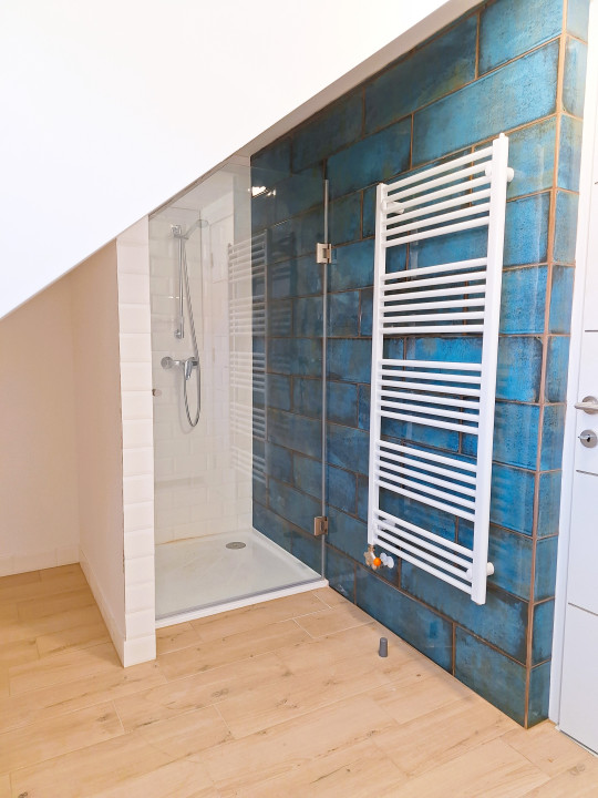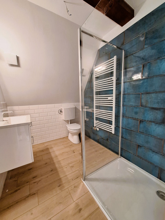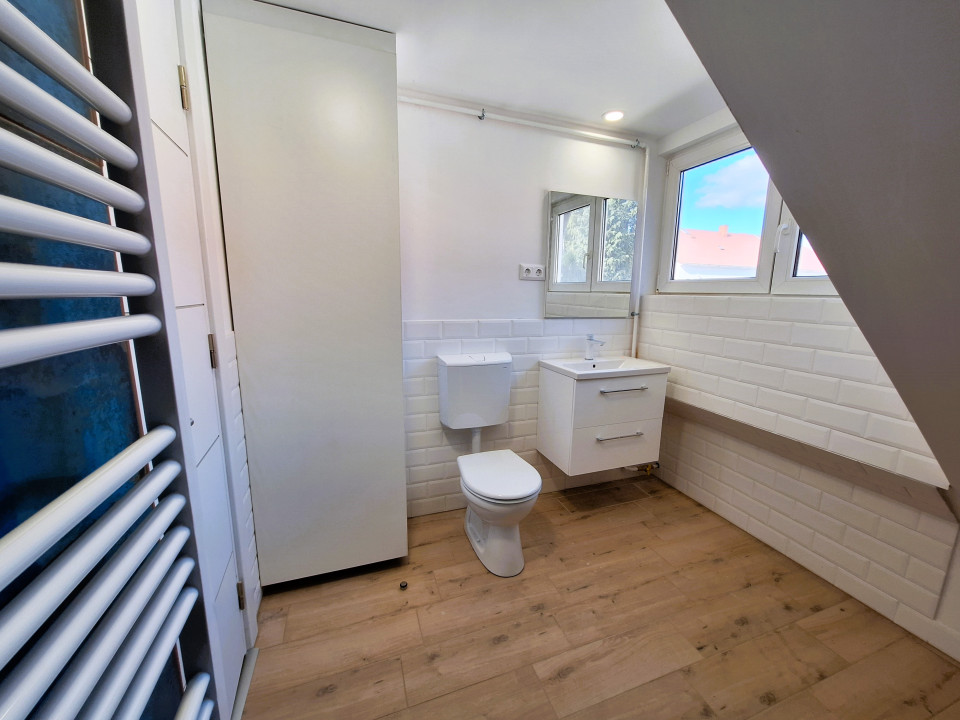 Az emeleten két hasonló méretű új lakás lett kialakítva.