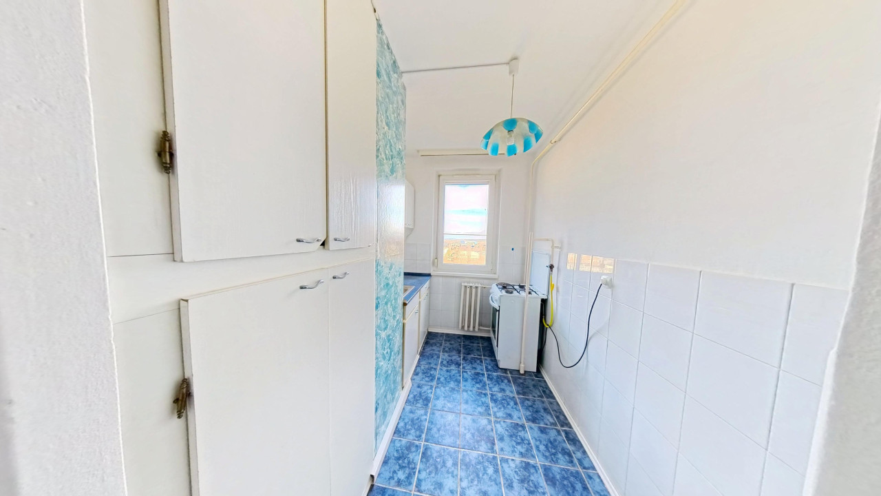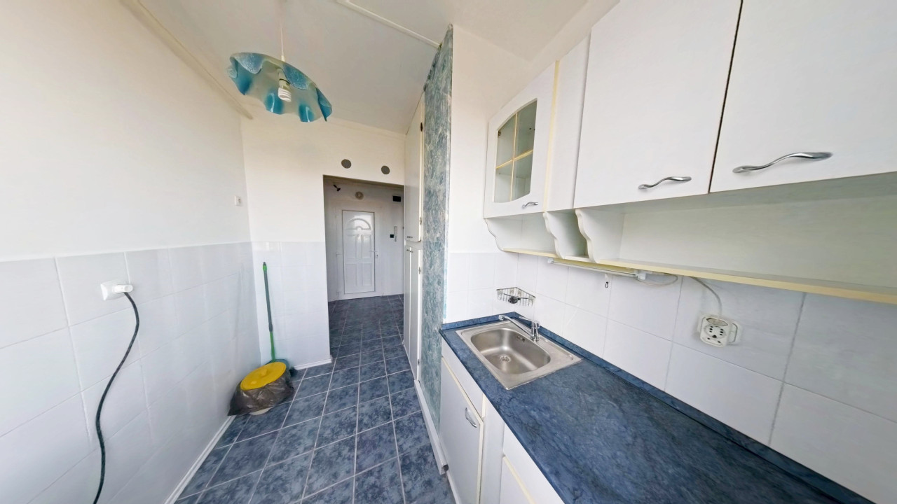 A bejárattal szemben a konyha található, melyben egy MENNYEZETIG ÉRŐ BEÉPÍTETT SZEKRÉNY segít a tárolásban. A bejárattól jobbra szintén van egy nagy beépített szekrény. Mellette helyezkedik el a fürdőszoba a WC-vel. A fürdő mellett a JÓL BÚTOROZHATÓ HÁLÓSZOBA lett kialakítva. Az ablakokat hőszigetelt műanyagra cserélték, melyeken redőny és szúnyogháló is van. A lépcsőházba tágas, új liftet szereltek be.
