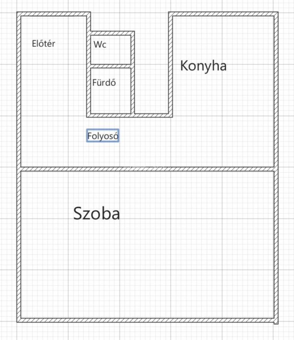 Ez a 43 m2 ad helyet egy nagyon tágas előtérnek, a fürdőnek, a külön helyiségben található toalettnek, egy nagyméretű szobának és a konyhának.