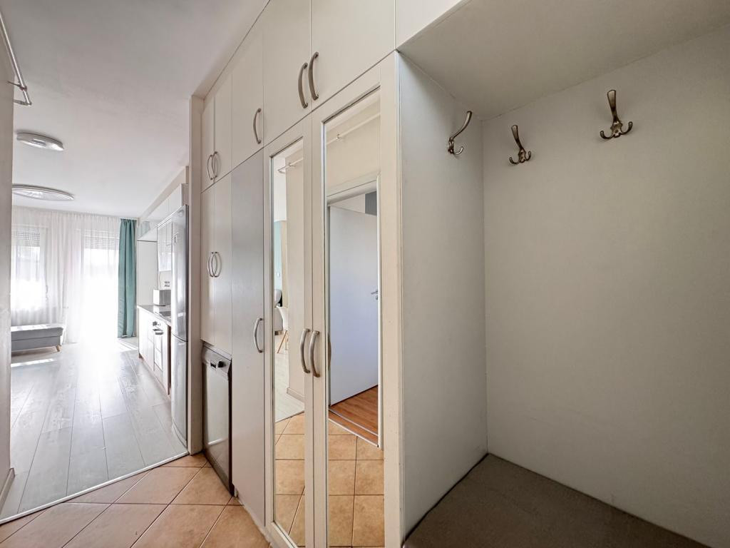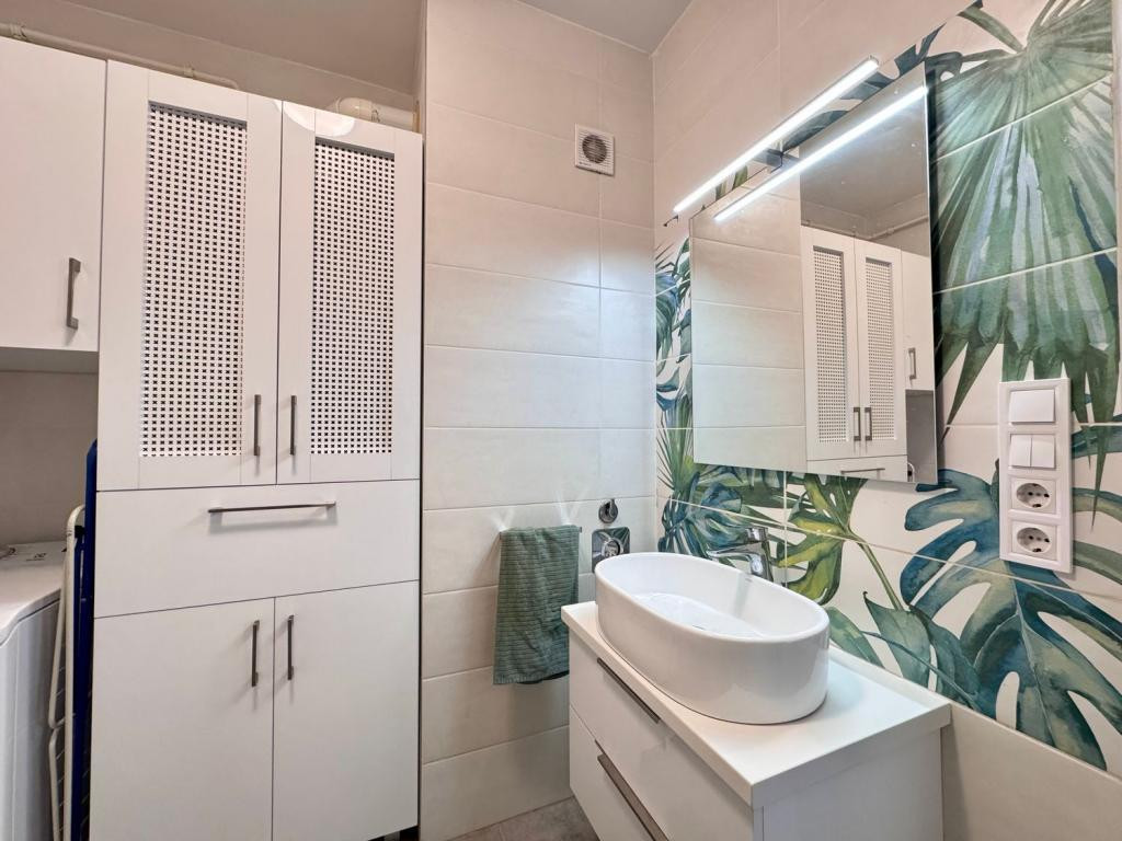 A lakás világos, csendes, mégis központi elhelyezkedésű – boltok, iskola, buszmegálló, gyógyszertár és a belváros néhány perc sétára található.